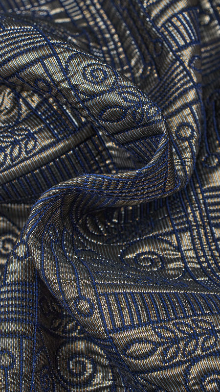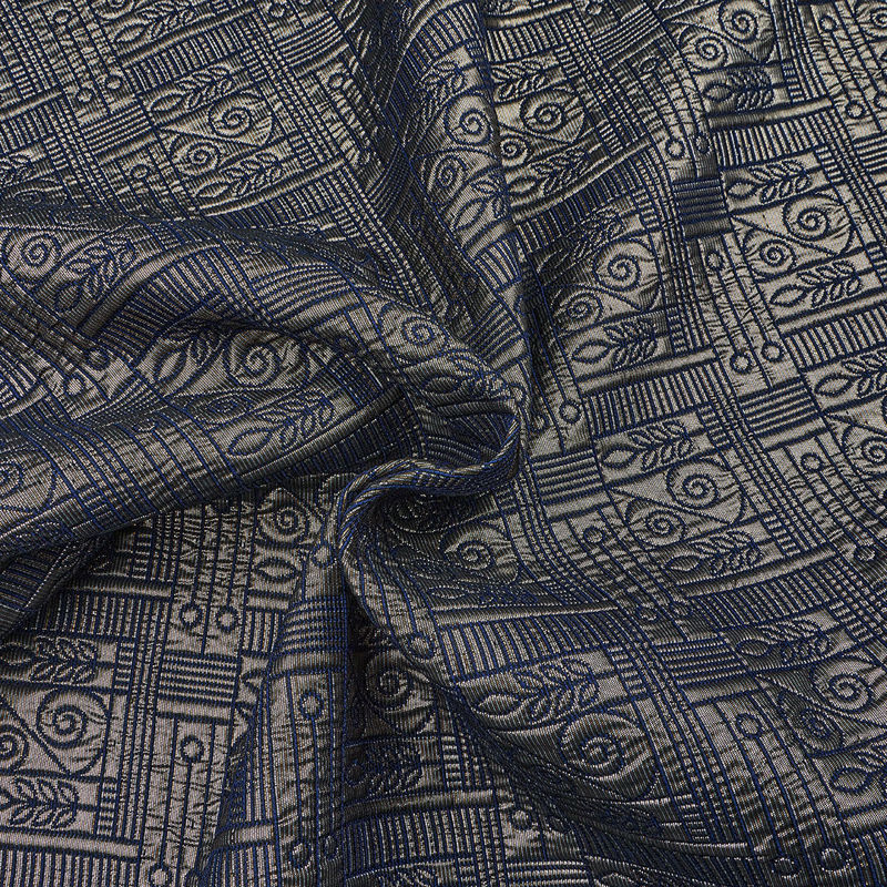 ژاکارد دبل فیس طرح قابی 031016 سرمه ای طلایی رنگ