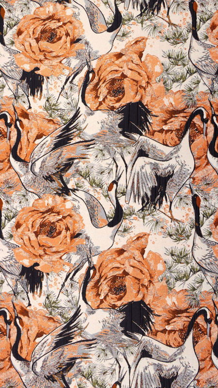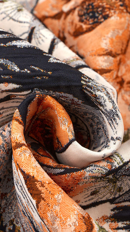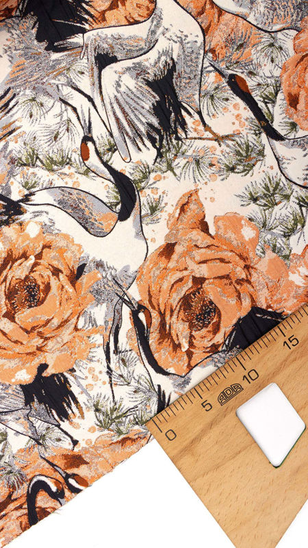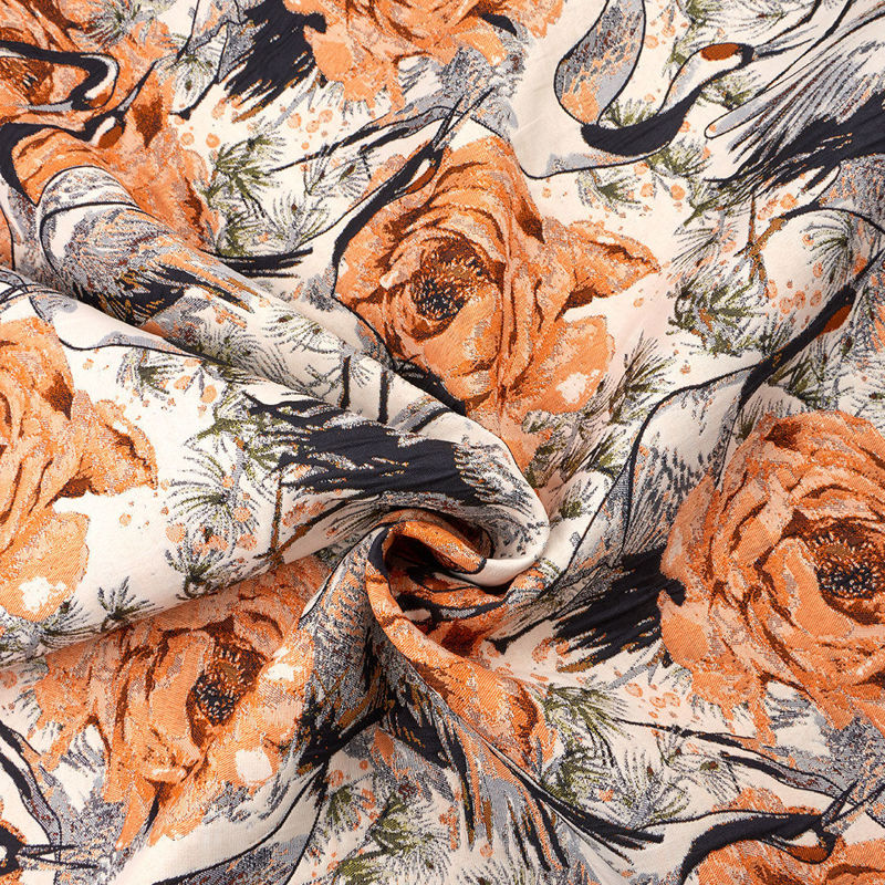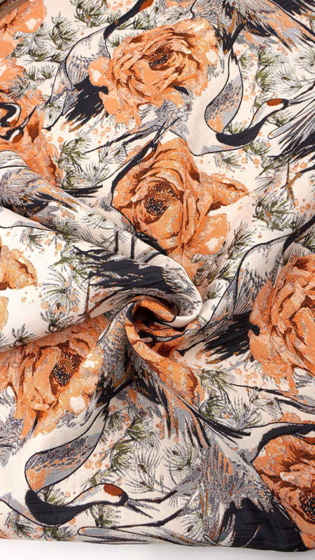 ژاکارد آمیتیس طرح گل و مرغ 031029 آجری رنگ