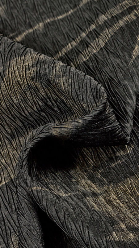 مخمل پلیسه ژاکارد 031118 مشکی طلایی رنگ