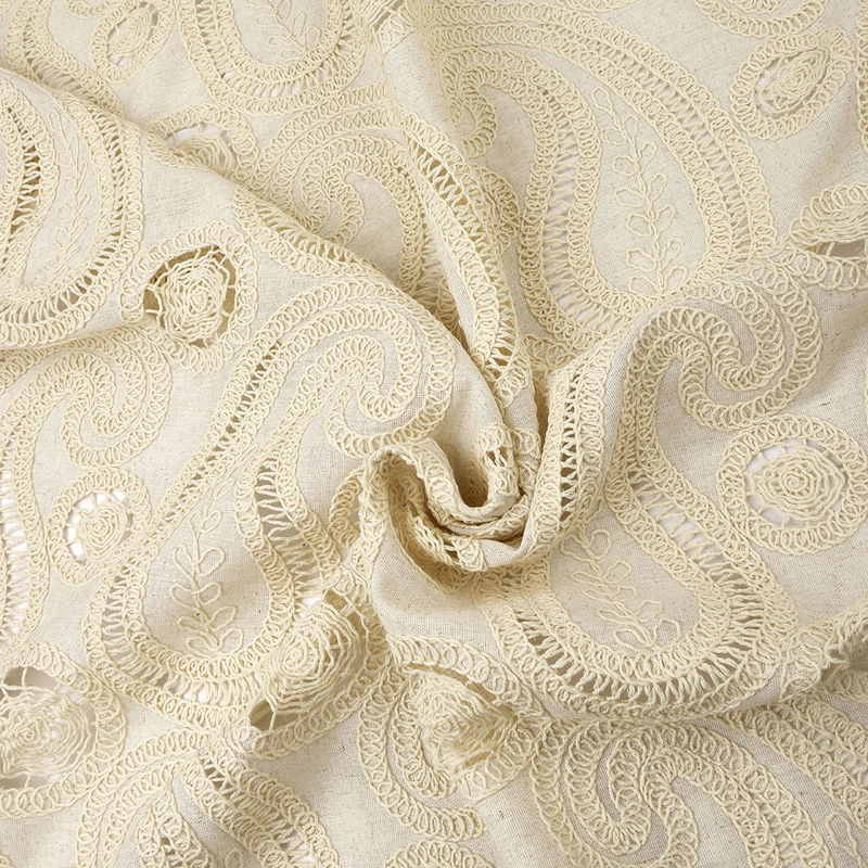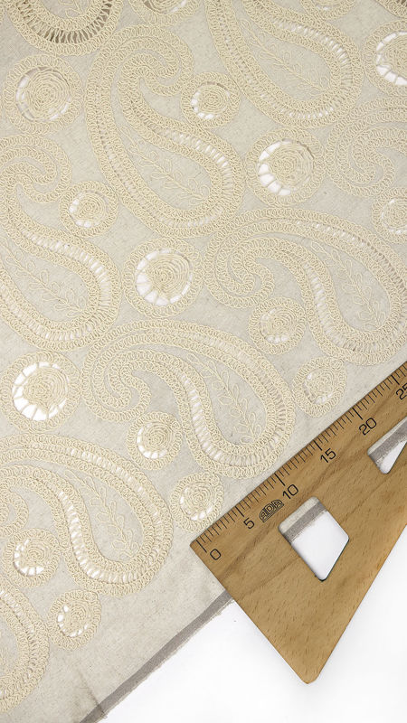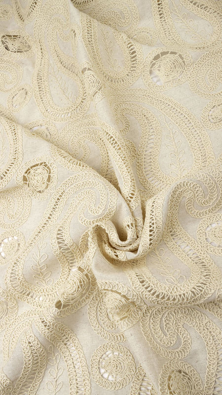 لینن قیطان دوزی گیپور طرح ترمه 031118 کرم رنگ