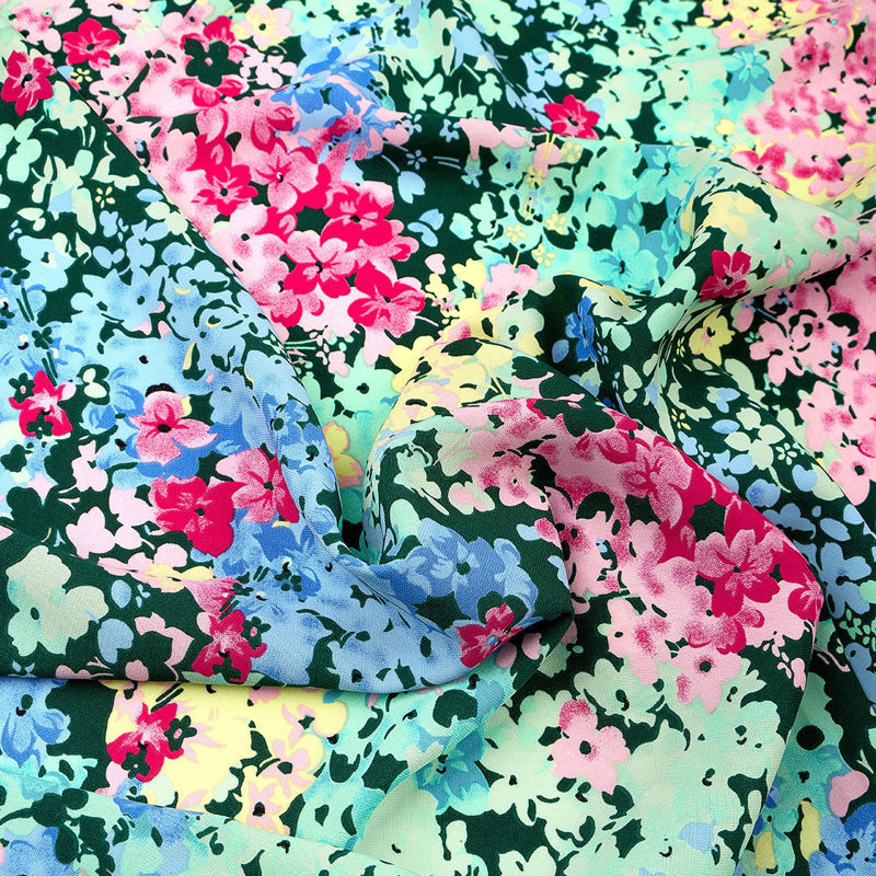 کرپ نخ طرح گلدار آبرنگی 031123 یشمی رنگ