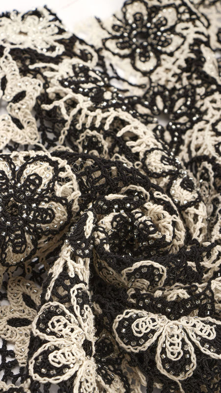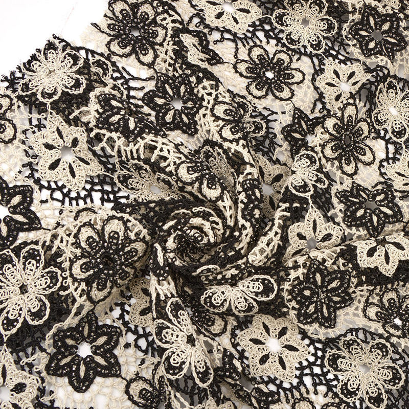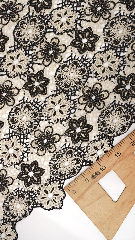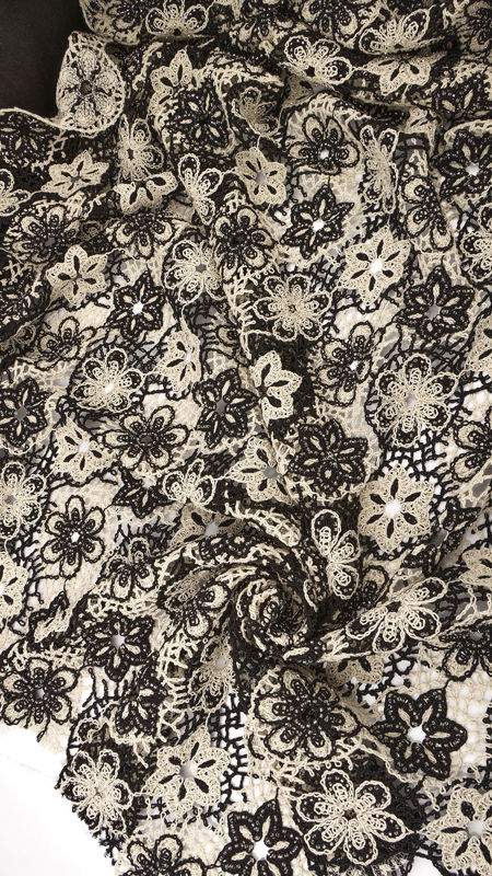 مجلسی گیپور طرح دار سنگی 031214/1 مشکی کرم رنگ