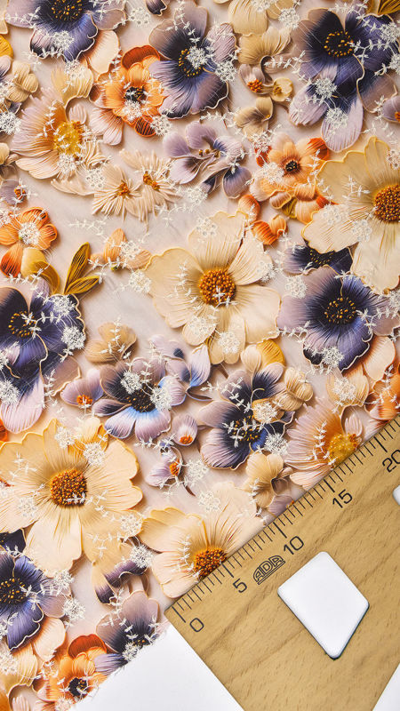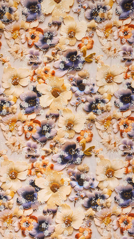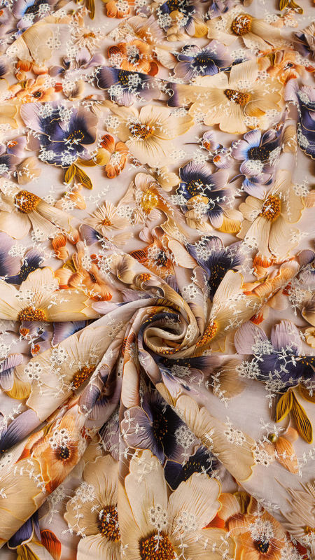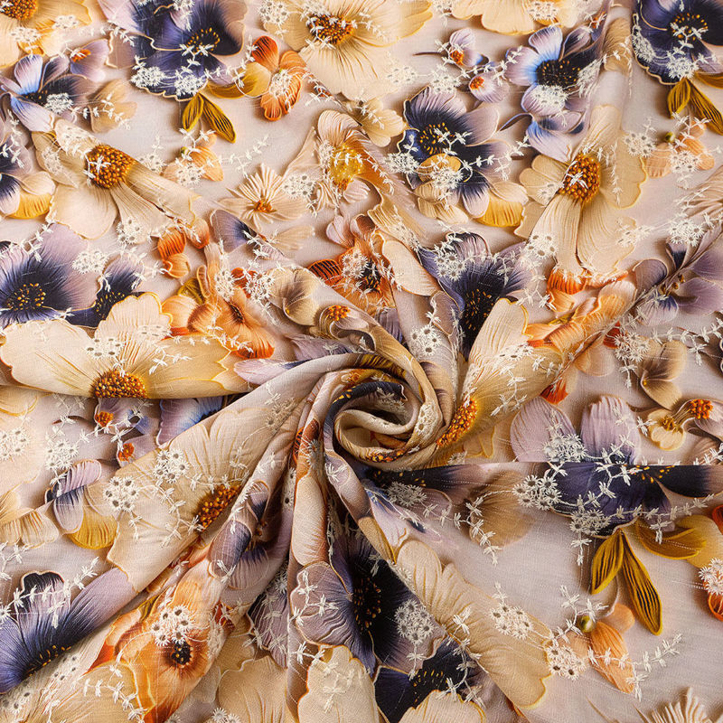 وال نخی خامه دوزی چاپی 040206/1 کرم سرمه ای رنگ